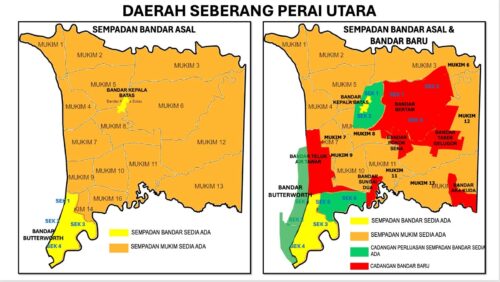 10个涉及边界的扩大的现有城镇包括:峇六拜(Bayan Lepas)、浮罗山背(Balik Pulau)、峇都丁宜(Batu Ferringgi)、丹绒武雅(Tanjong Bungah)、乔治市(George Town)、大山脚(Bukit Mertajam)、双溪峇甲(Sungai Bakap)、高渊(Nibong Tebal)、甲抛峇底(Kepala Batas),以及北海(Butterworth)。